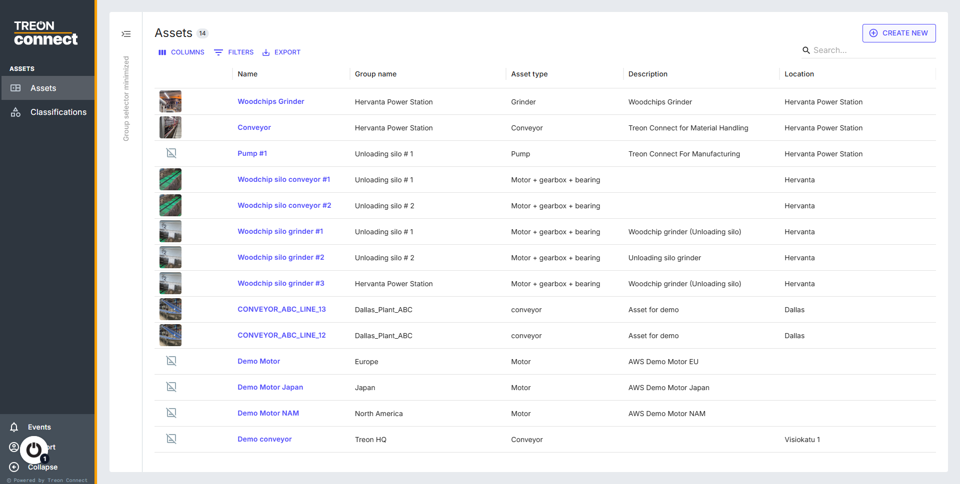 Assets are the machines equipped with one or multiple Treon Connect sensors.