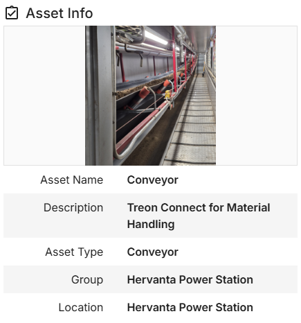00:33: On the left side you can see the Asset information with the description, the Asset type, the Group the Asset belongs to and the location description of the Asset.