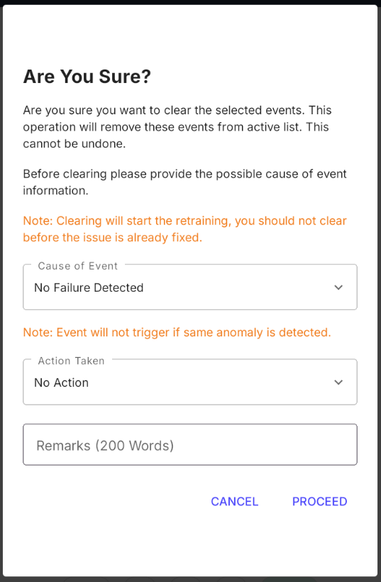 After all data about the event has been filled in, you can confirm clearing the Event by clicking Proceed.