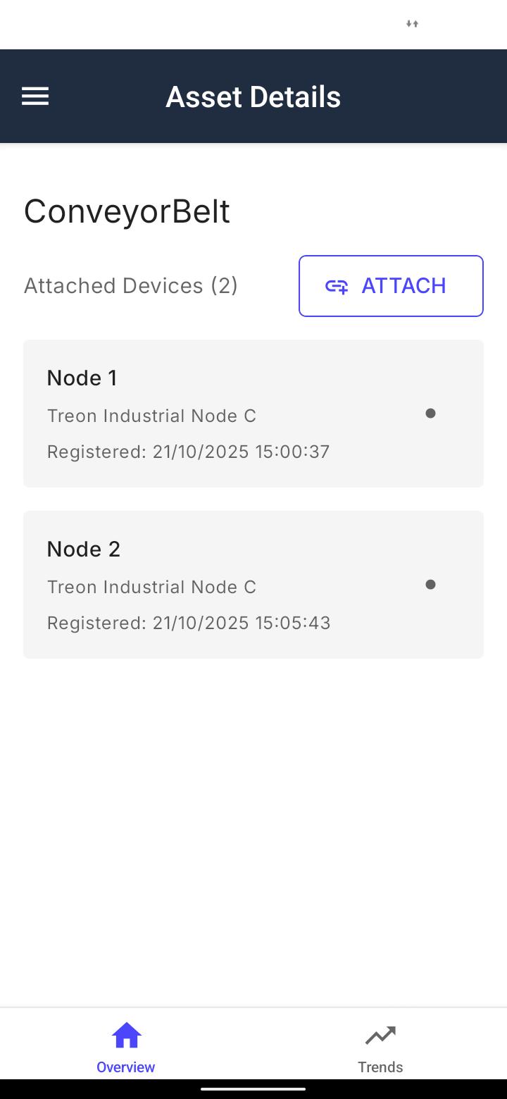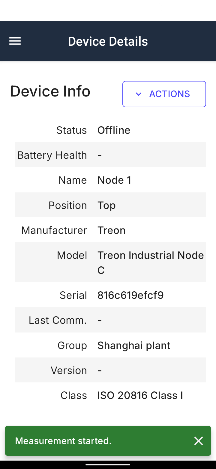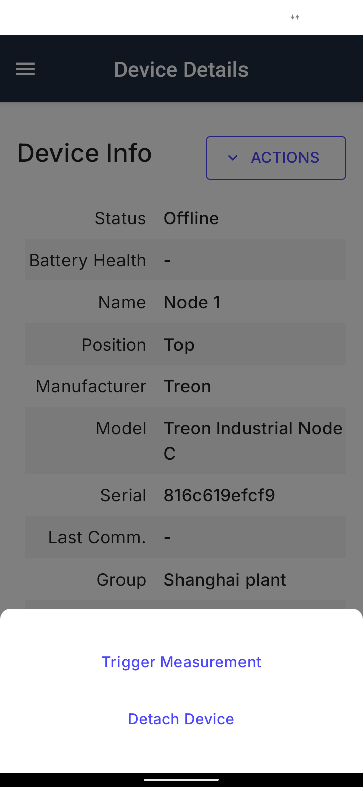 After triggering a manual measurement on a Treon Industrial Node C, please wait shortly until the sensor has completed the measurement and forwarded the data to your Treon Connect database. It can take 1 to 10 minutes for the data to be visible in your Treon Connect app.