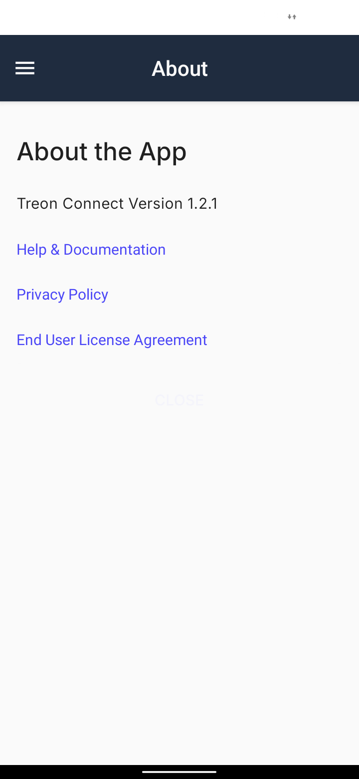 The About the App menu provides information on the Treon Connect app release version and includes links to valuable resources.