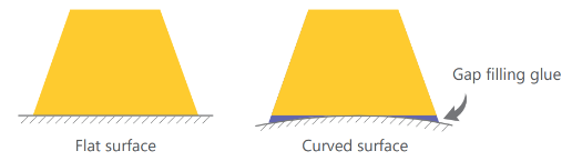 - For curved or uneven surfaces, apply a slightly thicker layer of adhesive such as Loctite 3090 or Loctite 4070 to ensure a secure bond.