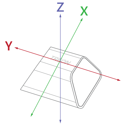 ⚠️ Treon Industrial Node C sensors measure vibration on three axes (X, Y, Z). These axes are marked on the sensor body. You do not need to align a specific axis with the machine’s vibration direction.