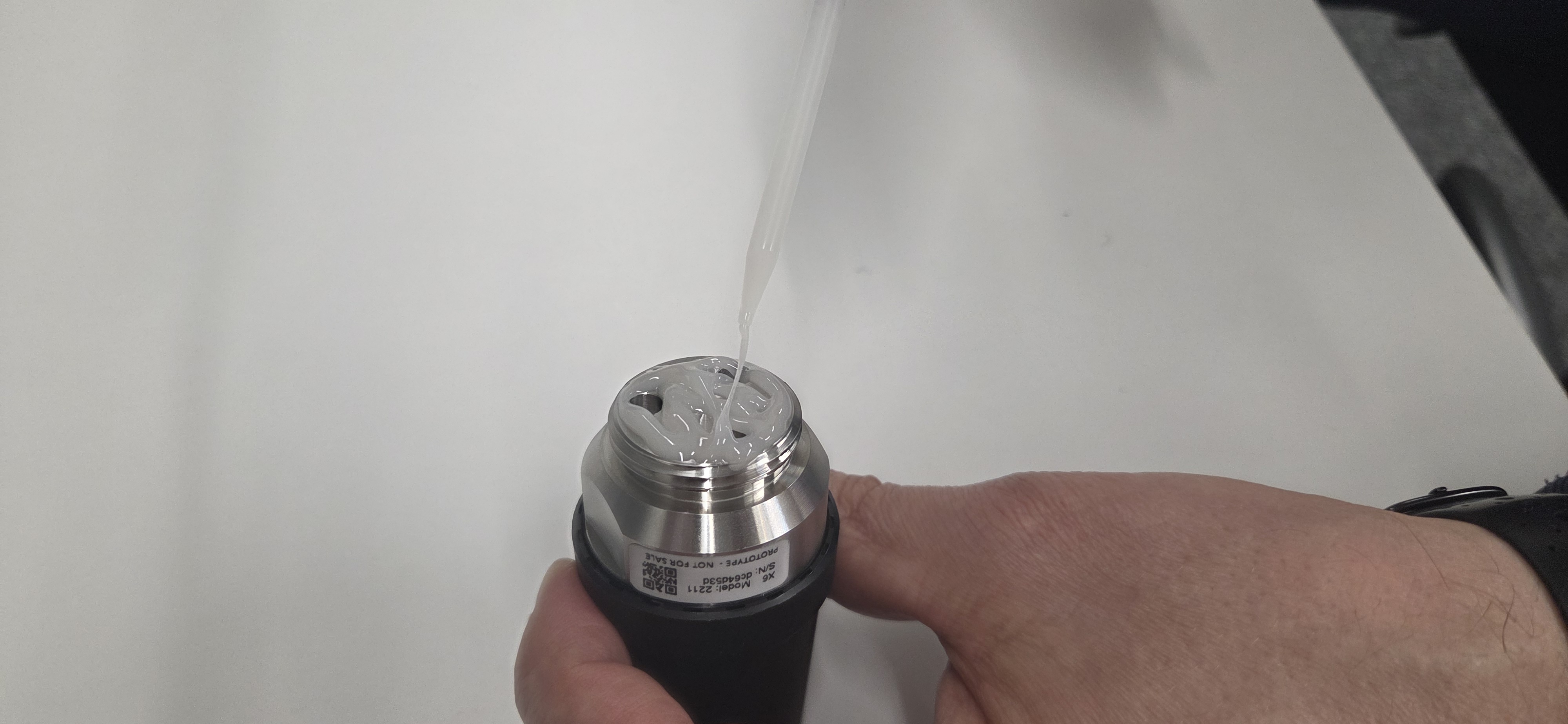 Apply the glue to the mounting area on the asset. The mounting area needs to be a minumum of 31.7 mm (1.25 in) in diameter.
