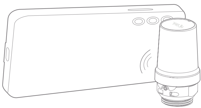 You can also use an NFC reader, such as NFC-enabled mobile phone to read the identification number: switch on NFC on the reader and touch the left side of the of the sensor with the reader.